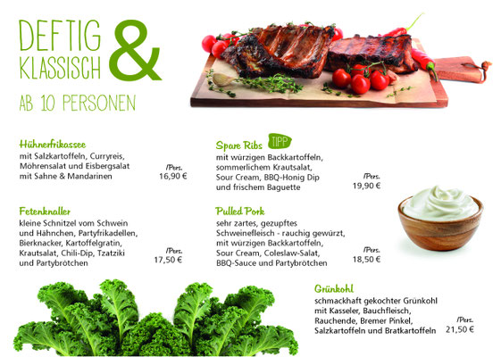Wir sind ein professioneller Catering-Betrieb und beliefern sowohl kleinere als auch größere Events. Als Familienbetrieb profitieren wir von langjähriger Erfahrung und legen Wert auf Frische und Qualität. Wir bieten eine vielseitige Auswahl an erstklassig zubereiteten Gerichten und freuen uns schon darauf gemeinsam mit Ihnen ein ansprechendes Wunschmenü für Ihre Feier zu erstellen.